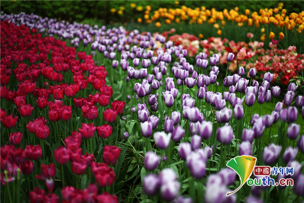 荷兰库肯霍夫公园花展举行 游客畅游绚丽花海
