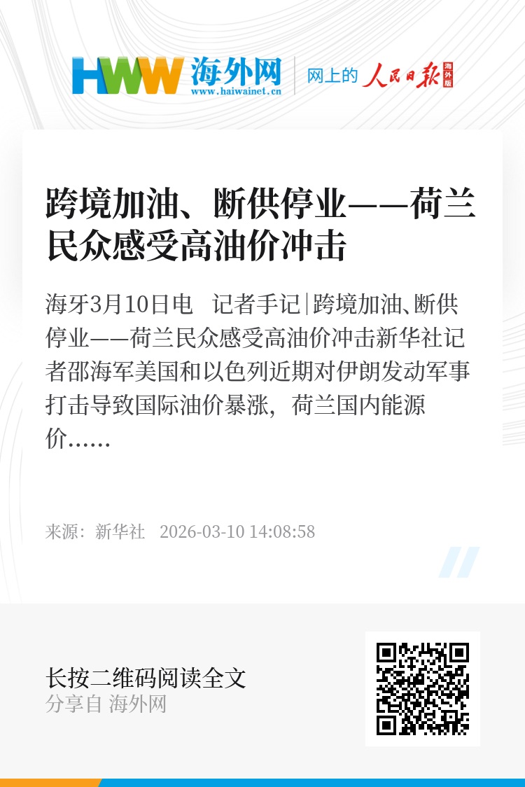 美国和以色列近期对伊朗发动军事打击导致国际油价暴涨,荷兰国内能源价格也随之上升,荷兰民众不仅遭遇加油难,更体会到钱包缩水的通胀之困。