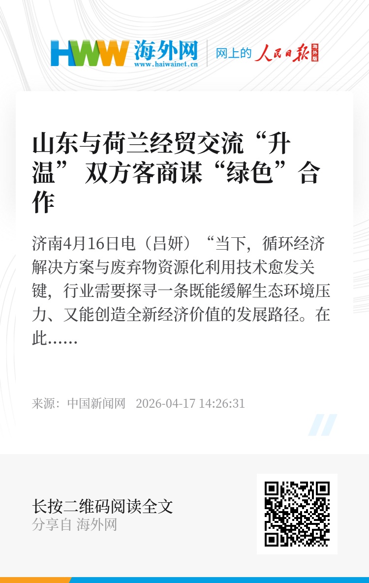 中新网济南4月16日电(吕妍)“当下,循环经济解决方案与废弃物资源化利用技术愈发关键,行业需要探寻一条既能缓解生态环境压力、又能创造全新经济价值的发展路径。在此过程中,国际合作将发挥至关重要的作用。”正值“荷鲁汇”荷兰—山东产业合作周,荷兰王国驻华大使馆公使衔商务参赞包适16日在济南表示。